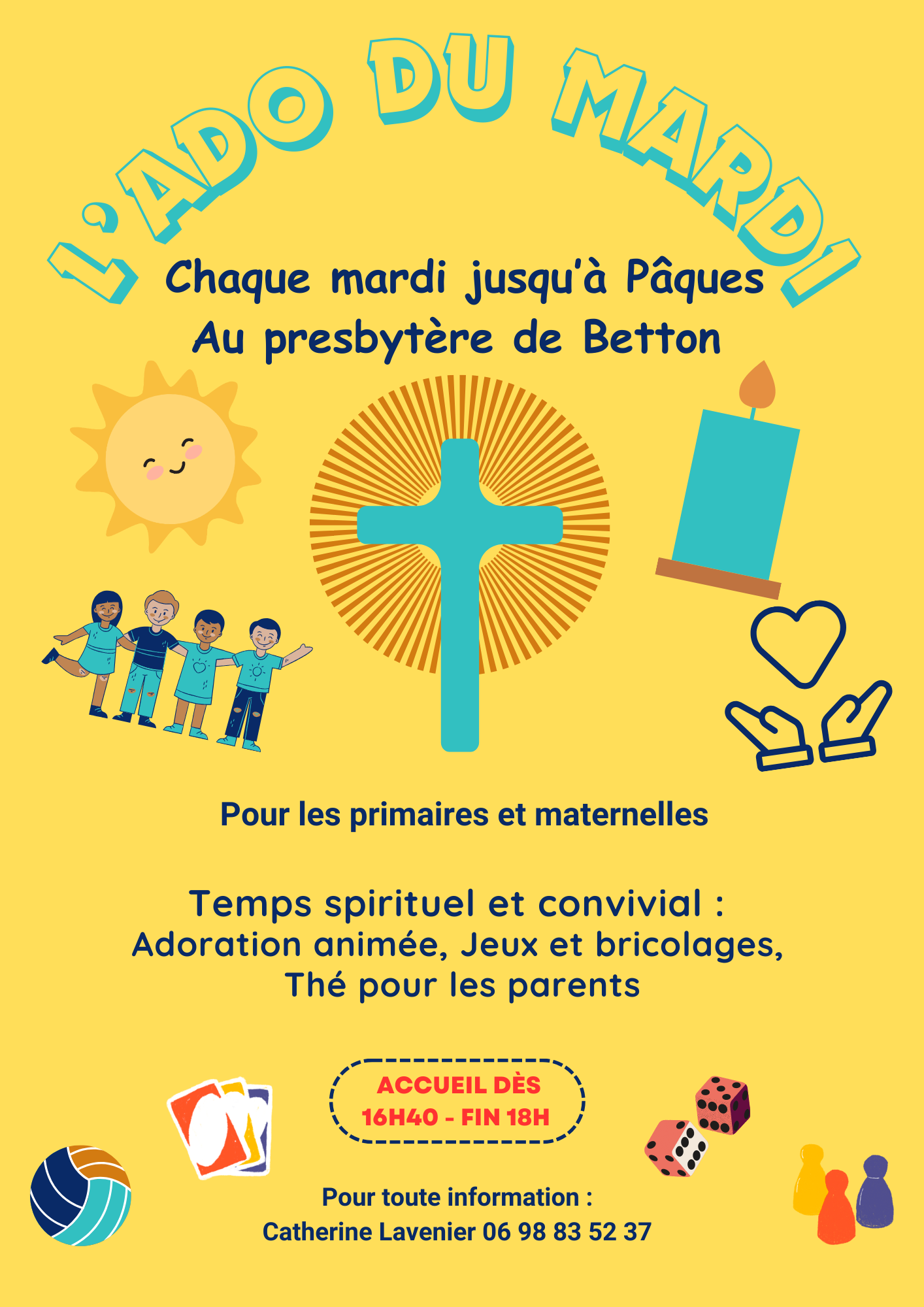 À partir du mardi 10 mars et jusqu’à Pâques, les enfants de maternelles et primaires sont attendus chaque mardi pour vivre un Carême plein de joie, de prière… et de jeux !