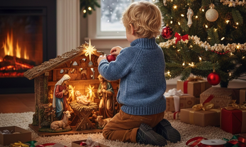 Au bout du chemin, dans la nuit de Noël, nous déposerons l’Enfant Jésus, entre d’un côté Marie sa mère qui le contemple et nous le présente, et de l’autre, St Joseph, gardien de la Sainte Famille et de nos familles. Allongé dans la paille de la mangeoire, il deviendra, comme bien souvent le fait la tendresse d’un nouveau-né, la nourriture de notre émerveillement et de notre joie.