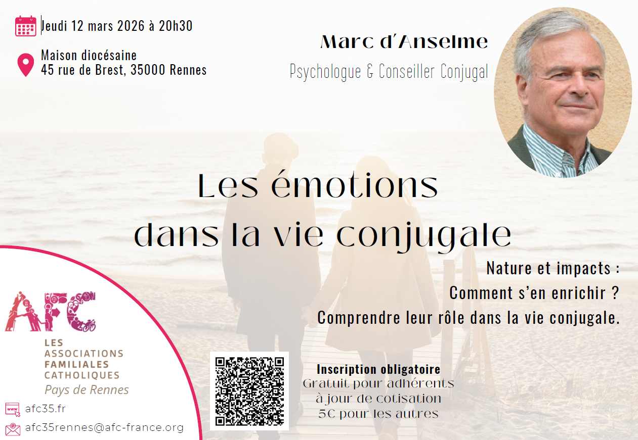 Pour nous aider à y voir plus clair et à mieux y répondre, nous aurons la joie d’accueillir Marc d’Anselme, psychologue et conseiller conjugal, qui partagera des repères concrets et bienveillants.